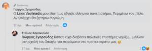 Μπορεί να είναι εικόνα 1 άτομο και κείμενο που λέει "Lakis Vasileiadis 15 15ώρ. ώρ. DalyFiel Άρθρο μου στο Παρασκήνιο Η επόμενη μέρα του Ελληνικού Πανεπιστημίου Η συζήτηση που έχει ξεκινήσει για το ζήτημα της ασφάλειας γύρω από τα Ελληνικά Πανεπιστήμια δεν είναι καινούρια. Για πολλές δεκαετίες εγείρονται ζητήματα που αφορούν την χρήση των πανεπιστημιακών χώρων από ομάδες που συνήθως δεν έχουν σχέση με τον πανεπιστημιακό χώρο, ούτε με την ακαδημαϊκή εκπαίδευση. Για πολλά χρόνια οι ομάδες αυτές κρύβονταν πίσω από το αδιευκρίνιστο ή παρερμηνευμένο καθεστώς του <<πανεπιστημιακού ασύλου>>," Μπορεί να είναι εικόνα 1 άτομο και κείμενο που λέει "Απαντήσεις στο σχόλιό σας στη δημοσίευση του χρήστη Lakis Vasileiadis. Γιώργος Σγορούδης Lakis Vasileiadis Λάκη αγόρι μου, επειδή δεν πέρασες ποτέ έξω από ελληνικό πανεπιστήμιο και επειδή πήρες ένα πτυχίο απο την Κύπρο στα γεράματα για να γίνεις βουλευτής. Βγάλε τον ΣΚΑΣΜΟ για τα ελληνικά πανεπιστήμια και ασχολήσου λίγο με τον ΟΠΕΚΕΠE. Το θράσος σάς δεν έχει όρια. Συνεννοηθηκαμε?"