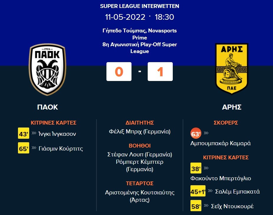 Ό,τι κι αν δοκίμασαν όμως οι γηπεδούχοι, ο Άρης έμοιαζε στιβαρός και λίγο έλειψε να τιμωρήσει τον ΠΑΟΚ που είχε τις γραμμές του ψηλά με μία αντεπίθεση του Καμαρά… Τελικό αποτέλεσμα στην Τούμπα, 0-1 με τον Άρη να παίρνει ένα σπουδαίο τρίποντο με άρωμα Ευρώπης και τον ΠΑΟΚ να βρίσκεται σε ελεύθερη πτώση!