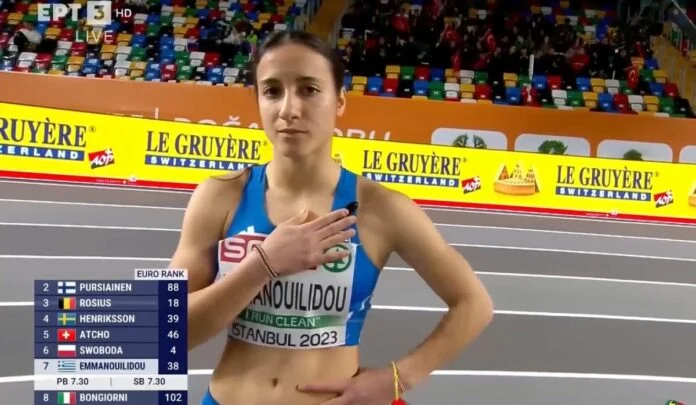 Η Πολυνίκη Εμμανουηλίδου έτρεξε στον ημιτελικό των 60 μ. στο Ευρωπαϊκό Πρωτάθλημα της Κωνσταντινούπολης και με 7.34 έμεινε εκτός τελικού.