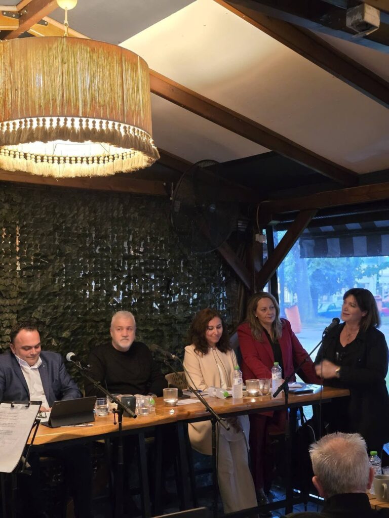 Ο Σπύρος Πετρουλάκης, συγγραφέας του ΣΑΣΜΟΥ, στην Σκύδρα με την Δήμαρχο Κατερίνα Ιγνατιάδου.