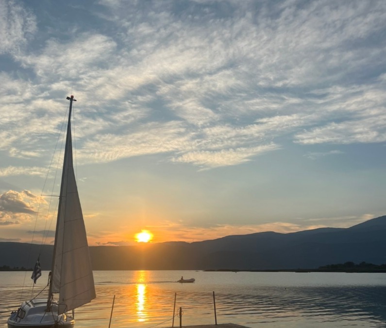 - Τοποθεσία: Παραλία της Βεγορίτιδας στην Άρνισσα, με θέα το ηλιοβασίλεμα.