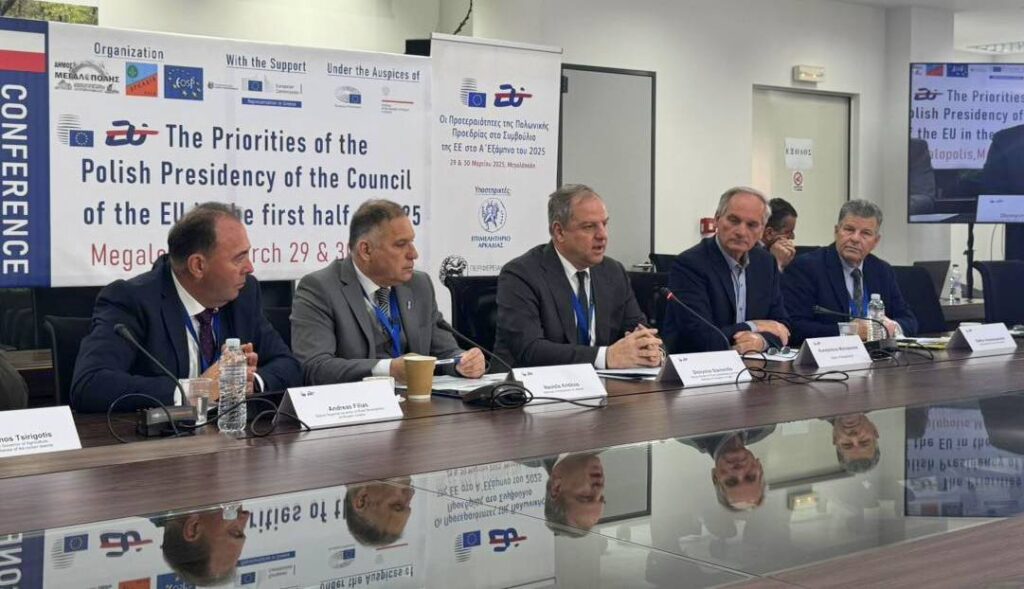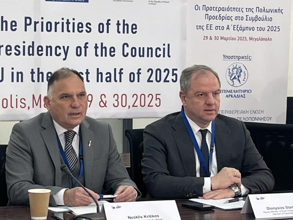 Στη διήμερη συνδιάσκεψη με θέμα: «Οι προτεραιότητες της Πολωνικής Προεδρίας στο Συμβούλιο της Ε.Ε. το Πρώτο Εξάμηνο του 2025», που διοργανώθηκε από τον Ευρωπαϊκό Οργανισμό Στρατηγικού Σχεδιασμού, σε συνεργασία με τον Δήμο Μεγαλόπολης και την ΑΡΚΑΔΙΑ ΑΕ παραβρέθηκε ο Υφυπουργός Αγροτικής Ανάπτυξης και Τροφίμων, Διονύσης Σταμενίτης.